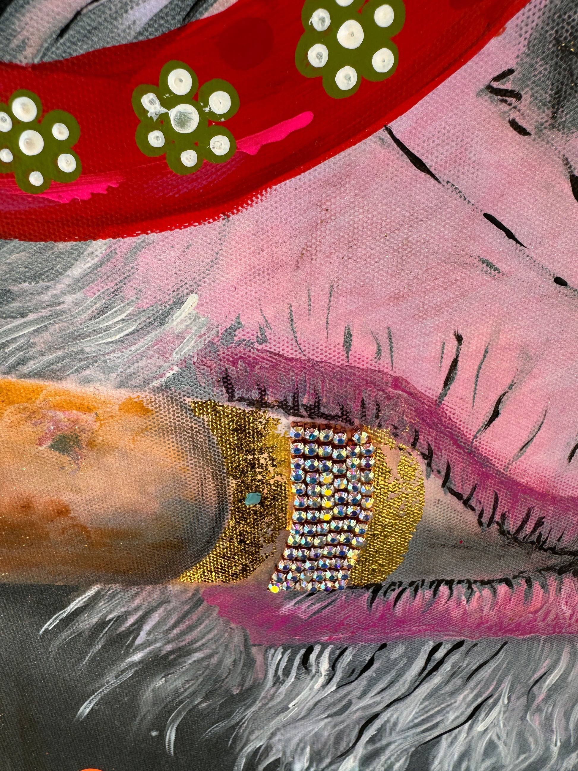 Technik: handüberarbeiteter Druck(alle einzelnen Nieten und Strass werden wieder eingebaut)