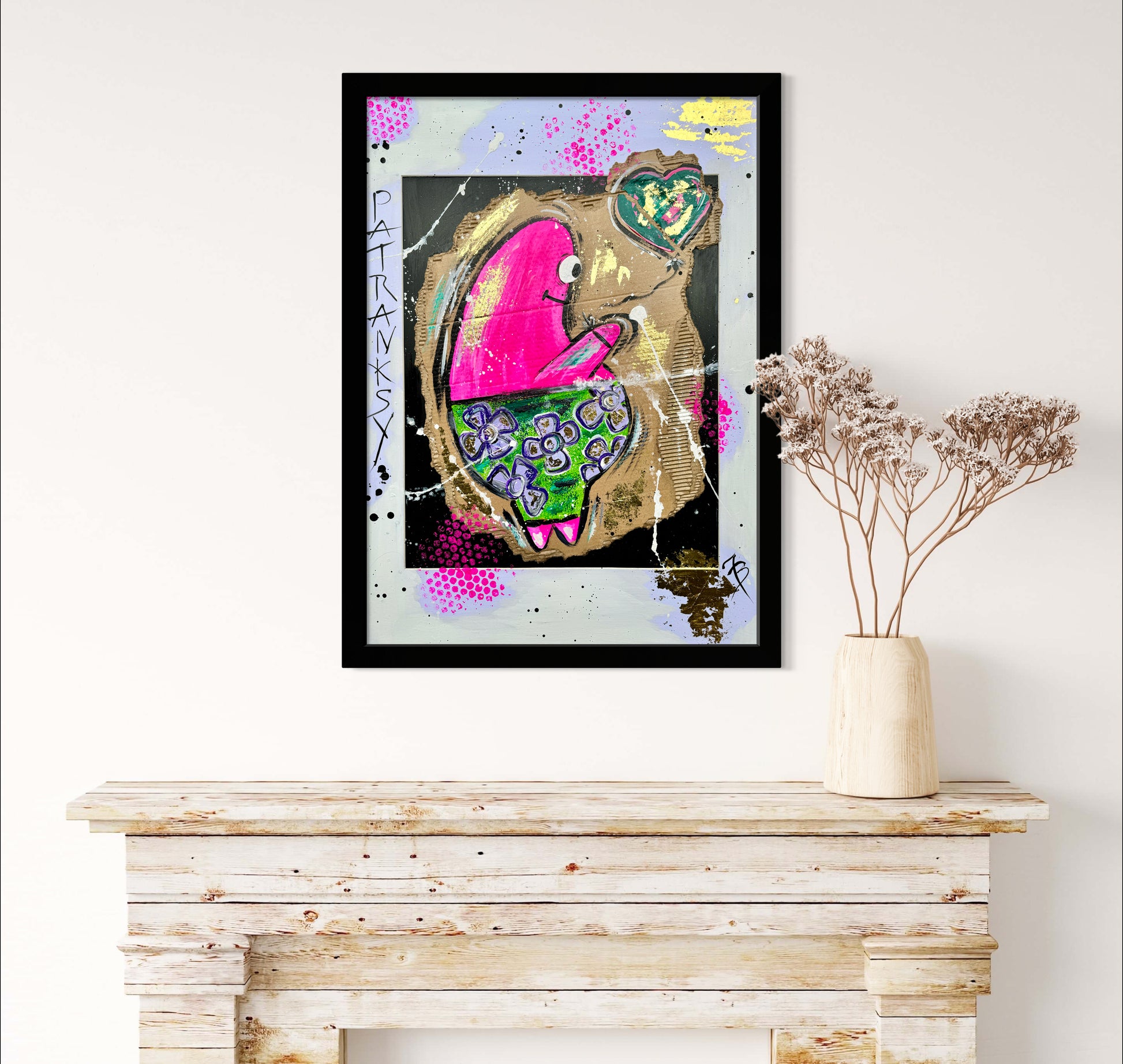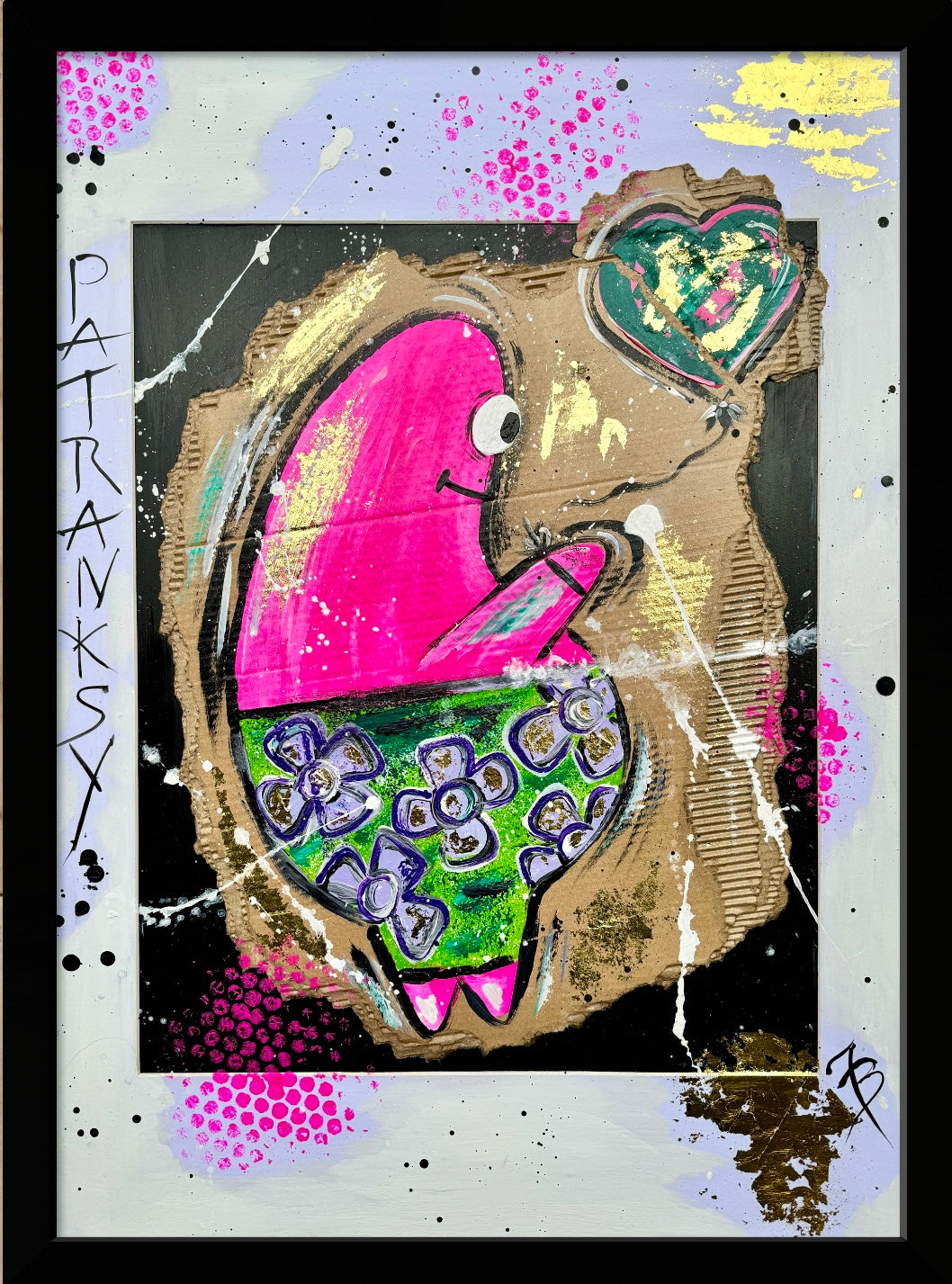 Knallpink, leicht verpeilt, aber mit Herz am richtigen Fleck – dieses charmante Wesen bringt Streetart auf Kuschelkurs.