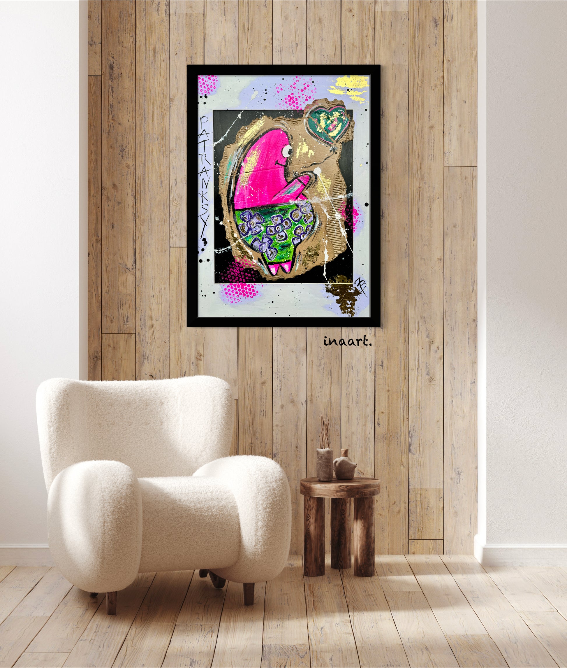 Original "freche" Acryl Malerei auf Karton mit Blattgold Elementen