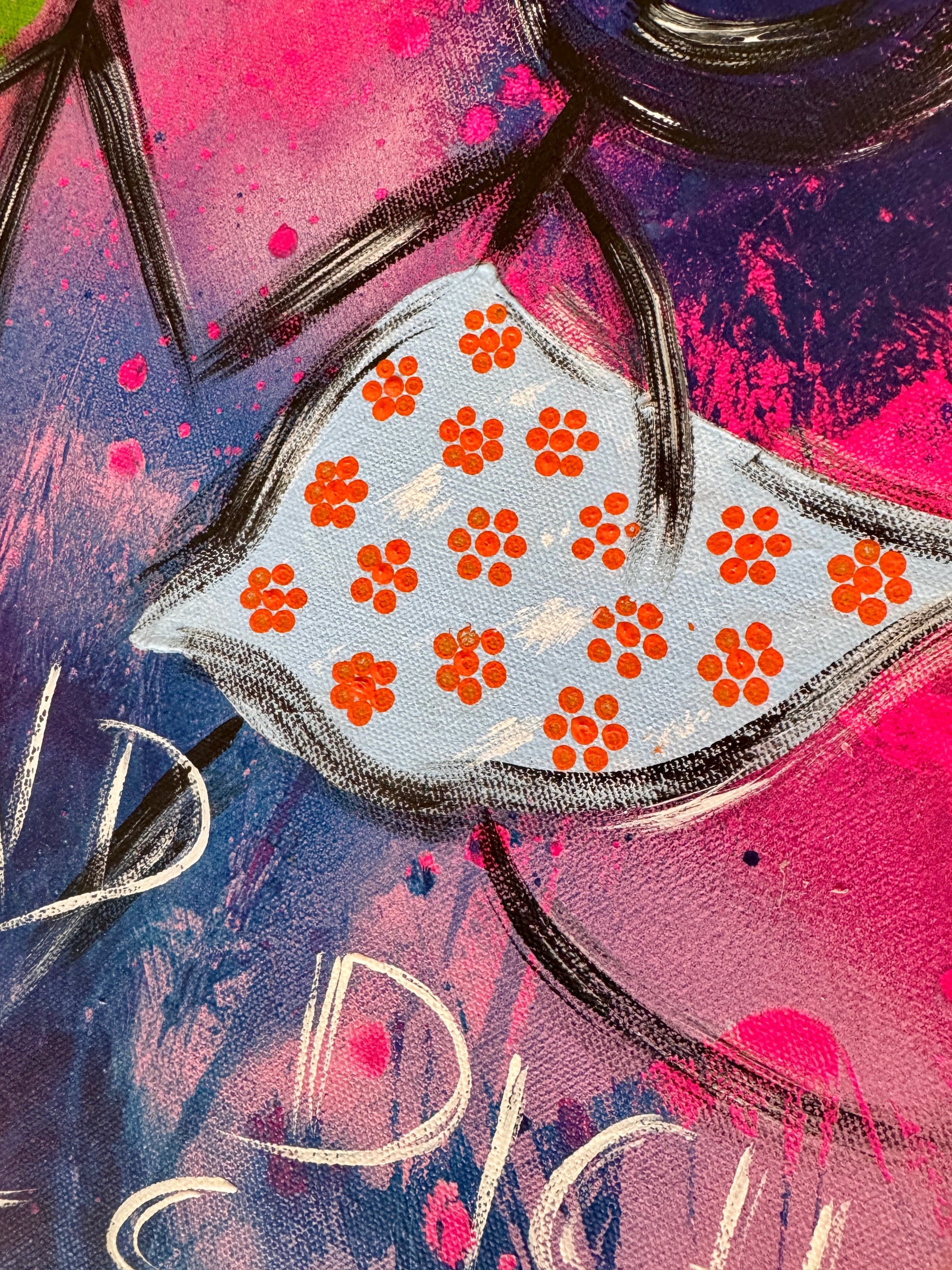 Perfekt als Geschenk für deinen Lieblingsmenschen oder als knalliger Eyecatcher für dein Zuhause. Dieses Werk ist ein lautes “ICH MAG DICH!” im besten 90s-Graffiti-Comic-Stil – mit extra viel Charme und Augenzwinkern.